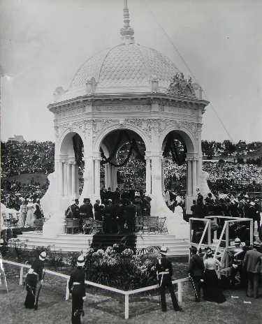 After the ceremony, the guests left for the first sittings of the Federal Parliament in its temporary accommodations at the Victorian Parliament. The Senate met at 1:10 pm in the Victorian Legislative Council and the House of Representatives met at the Victorian Legislative Assembly at 2:30 pm [1]. The Victorian Parliament moved the Exhibition Building until the new Federal Parliament building was completed at Canberra in 1927.